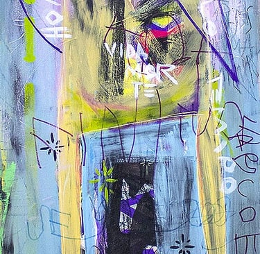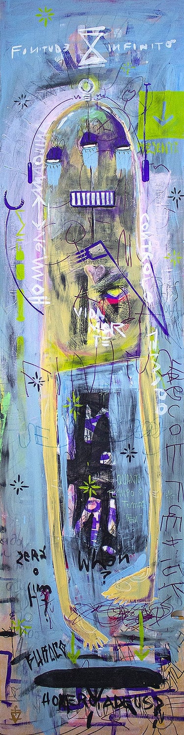 Acrílica, spray, marcadores e giz sobre madeira