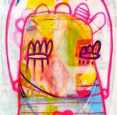 Acrílica, spray, marcadores e giz sobre tela