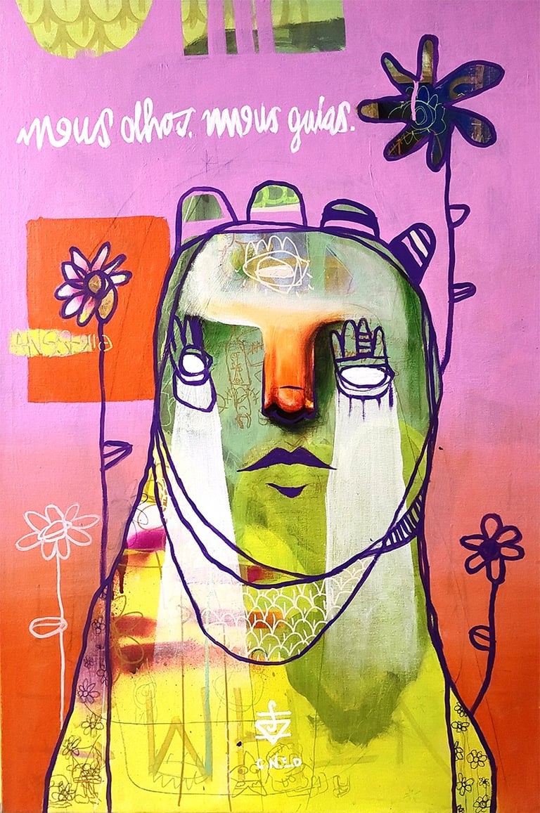 Acrílica, spray, marcadores e giz sobre tela